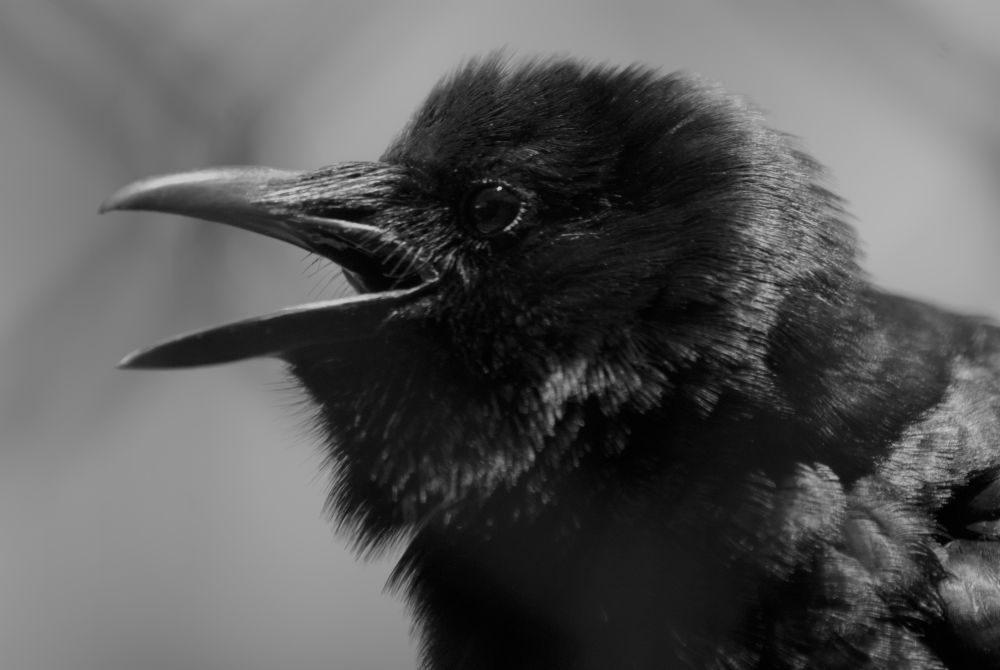 A wild fish crow cawing! Edited it to make it monochrome, I feel it looks better that way.